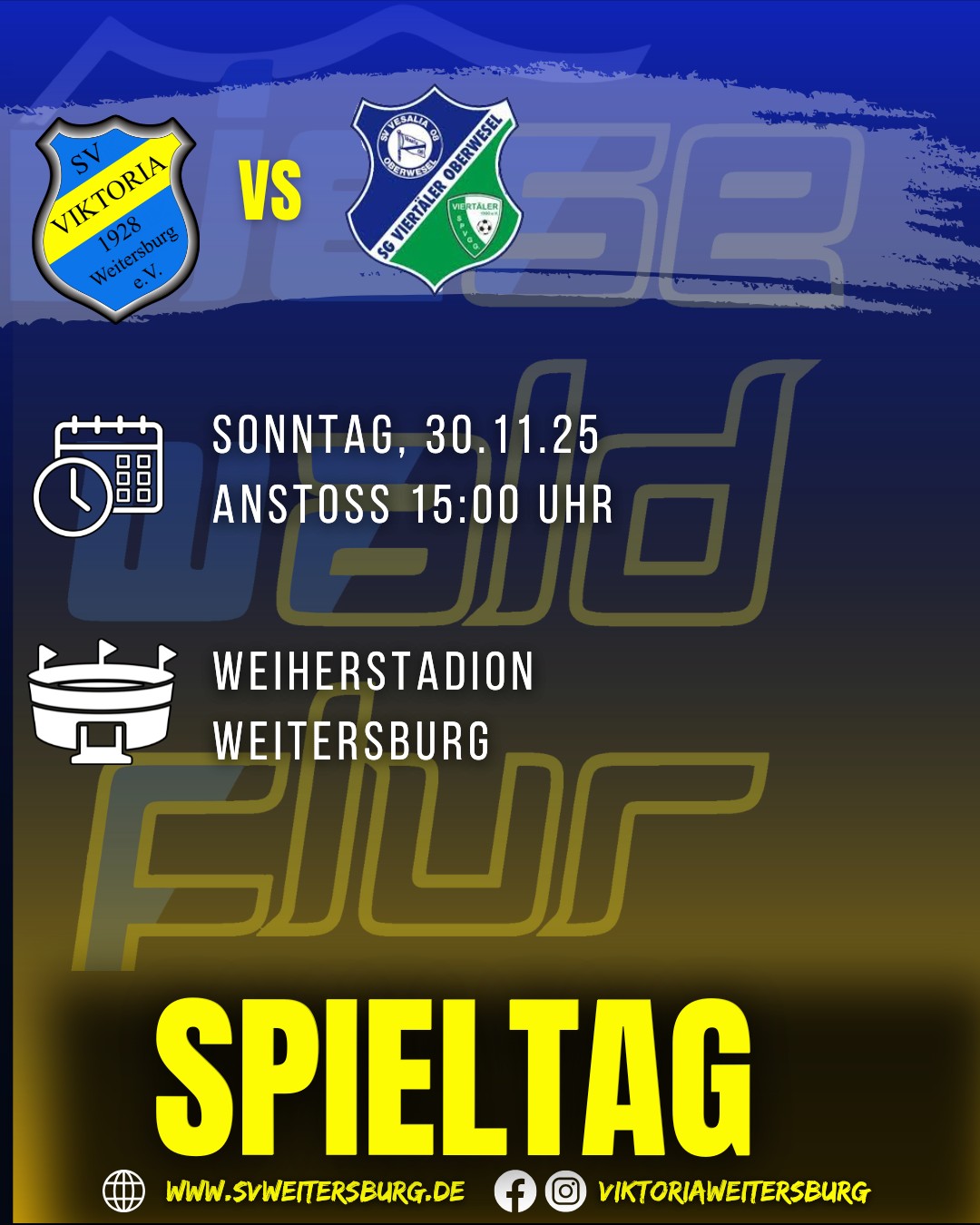 Zum letzten Pflichtspiel in diesem Jahr empfängt der SV Viktoria Weitersburg die abstiegsgefährdete SG Oberwesel im Weiherstadion.
