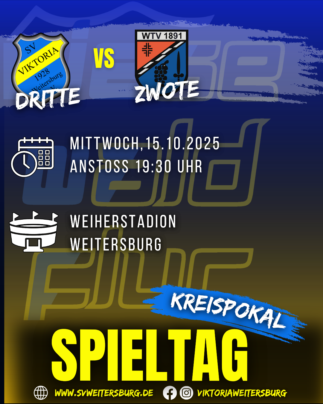 2. Runde Kreispokal: Mittwoch 15.10, 19:30 Uhr
