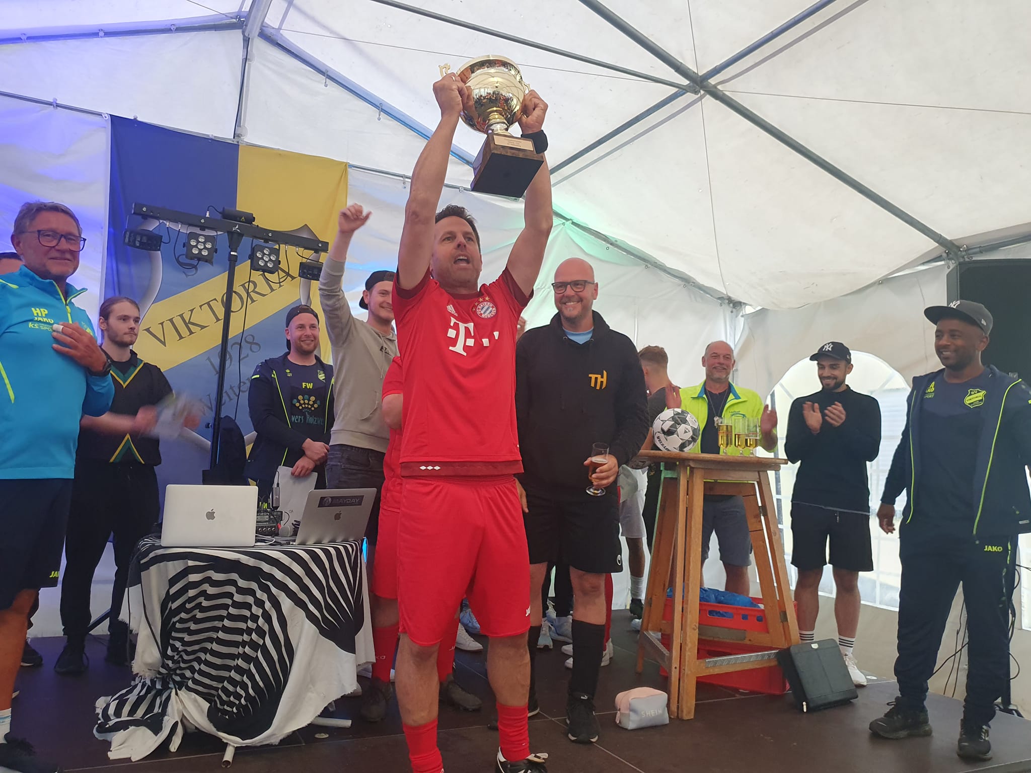 In über 50 Spielen, die alle geleitet wurden von den „Hobbyschiedsrichtern“ Scarly Köhler, Matteo Castor, Marcel Mattern und Kay Mäder-Nick, sahen die Fans fast 150 Tore. Am Ende der Vorrunden, Viertel- und Halbfinalspiele standen dann der Bayern-Fanclub Die Krokodile und „die Hühner“ im Endspiel um den diesjährigen Viktoria-Cup. Zwei Teams, die vor Turnierbeginn wohl nur wenige zu den Favoriten zählten. Fußballdorfmeister wurde der Fanclub durch einen 3:0 Sieg. Aber wie schon in den letzten Jahren ging es weniger um den Turniersieg, sondern um den Spaß am Fußball. Und hier konnten sich an diesem Nachmittag fast 170 Hobbykicker austoben und ihrem liebsten Hobby nachgehen.