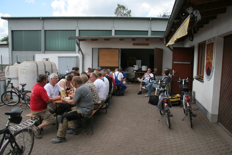 Innenansdie verdiente Pause mit Eintopf und Wursttrich des Aufenthalts- und Besprechungsraumes als auch beim Anstrich der L-Steine hinter den (ehemaligen) Toren wurden einige Eimer Farbe verstrichen und die zahlreichen Helfer kamen ganz schön ins schwitzen. Sicherlich werden auch am nächsten Samstag wieder ab 09:00 Uhrviele Helfer benötigt. Der SV freut sich über jede(n) Helfer(in). Für das leibliche Wohl ist wie immer bestens gesorgt.