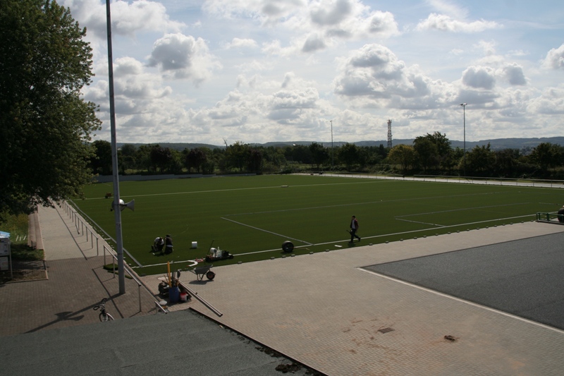 Nachdem an den letzten Wochenenden die Aktiven des SV Viktoria die Pflasterarbeiten so weit es ihnen möglich war zu Ende brachten, waren unter der Woche auch die Arbeiter der beauftragten Firma fleißig. Täglich können die interessierten Zuschauer Baufortschritte verzeichnen, so dass mittlerweile Form und Größe des Sportplatze, des Kleinspielfeldes sowie der Laufbahn sehr gut zu erkennen sind. Seit dieser Woche wird nun im Weiherstadion der eigentliche Kunstrasen verlegt. Nur noch wenige Wochen, dann wird wieder das Leder im Weiherstadion rollen, und das auf einem Belag, von dem viele Fußballer träumen!