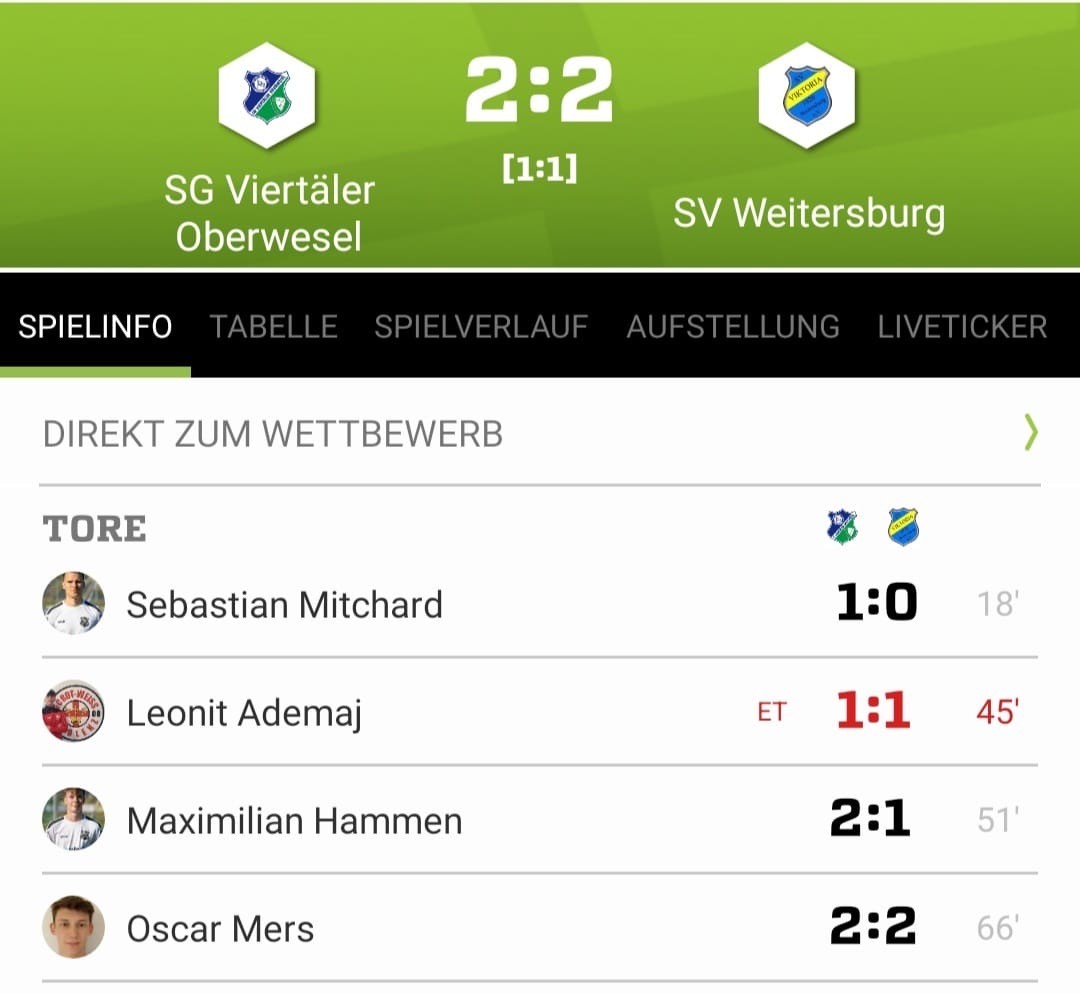 SG Viertäler Oberwesel SV Weitersburg 2:2 (1:1)
