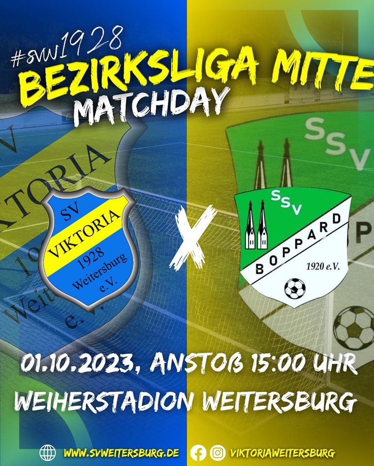 Mit dem SSV Boppard empfängt der SV Viktoria einen Aufsteiger im Weiherstadion. Die Gäste verfügen über einen namhaften Kader mit einigen überregional bekannten Akteuren. Vielleicht von Vorteil für die Viktoria, dass sie in Weitersburg die vierte Partie innerhalb von 11 Tagen spielen. Dennoch sollte der SV gewarnt sein und die Gäste nicht unterschätzen. Zuletzt erreichten sie zu Hause gegen die SG Liebshausen ein 2:2. Für die Blau-Gelben gilt es weiter Punkte zu sammeln, damit der Platz im oberen Tabellendrittel gefestigt werden kann.