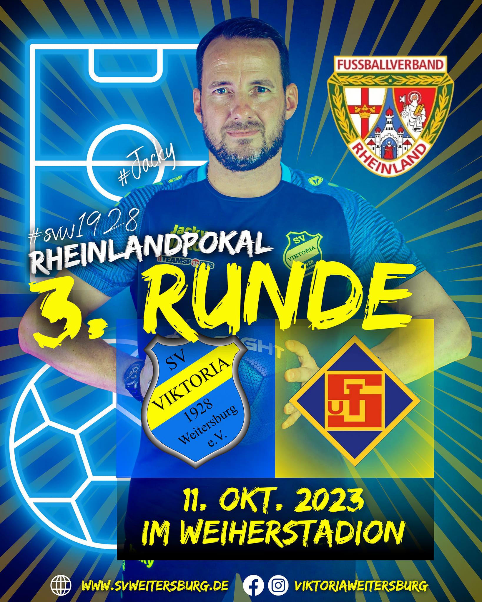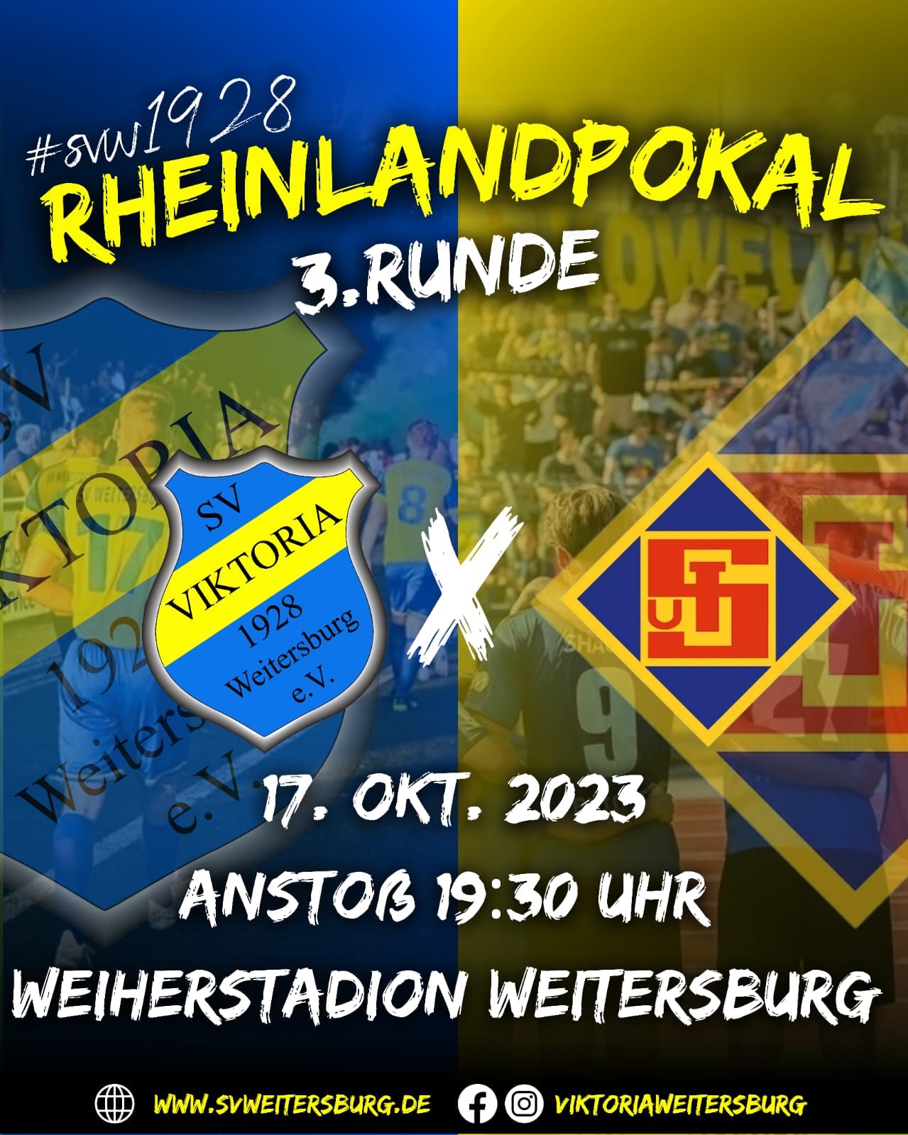 Wie an dieser Stelle bereits angekündigt, empfängt der SV Weitersburg in der dritten Runde im Rheinland-Pokal den Regionalligisten TuS Koblenz im Weiherstadion. Der SV Viktoria qualifizierte sich durch Siege gegen den C-Ligisten SC Sinzig mit 5:1 und den Rheinland-Ligisten SG Andernach mit 7:5 nach Elfmeterschießen für die 3. Runde. Die TuS Koblenz hatte in der ersten Runde ein Freilos. In der 2. Runde besiegten sie den A-Ligisten DJK Kruft/Kretz vor über 600 Zuschauern mit 9:1.