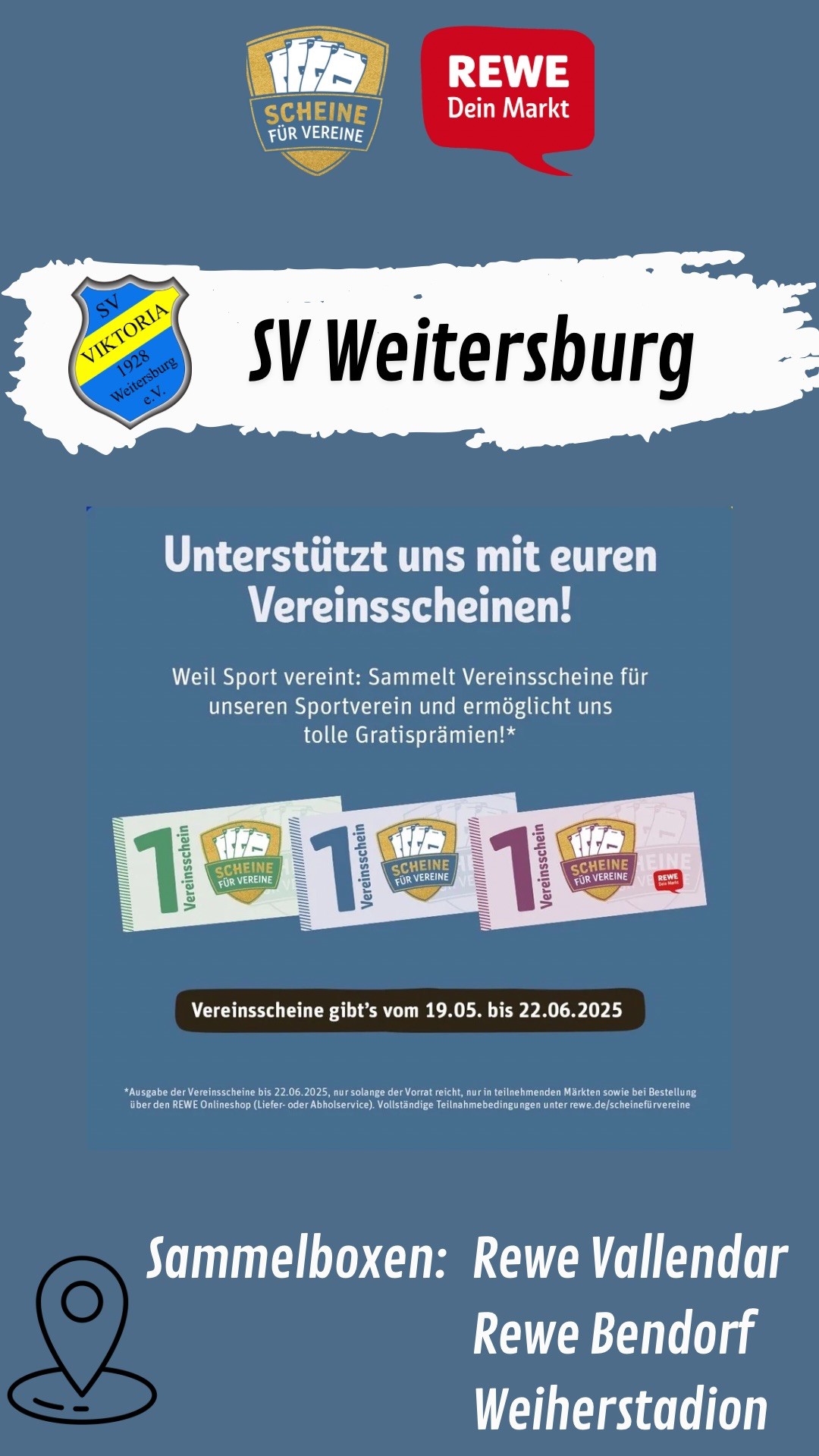 Der SV Weitersburg freut sich, auch in diesem Jahr wieder an der beliebten Aktion „Scheine für Vereine“ der Rewe-Märkte teilzunehmen!