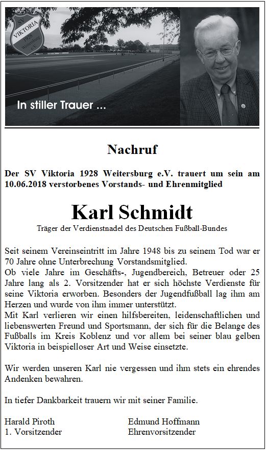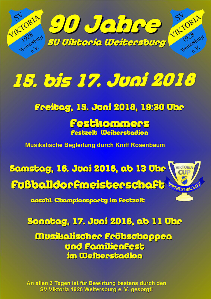 Vom 15. bis 17. Juni 2018 feiert der SV Viktoria sein 90jähriges Vereinsjubiläum im Weitersburger Weiherstadion.