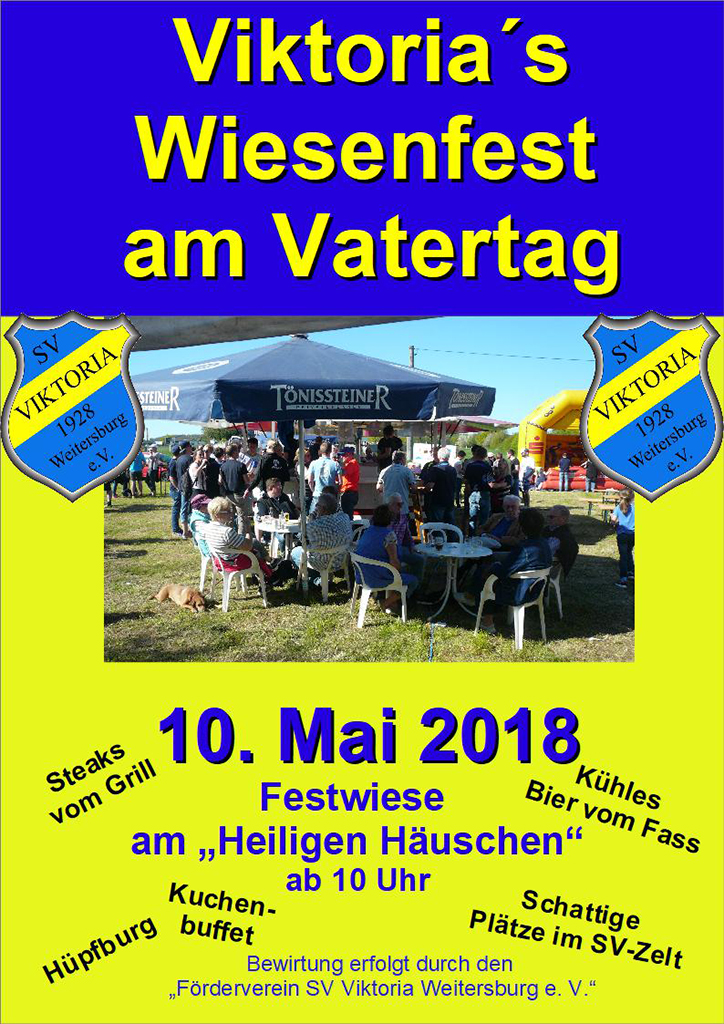 In diesem Jahr feiert der SV Viktoria nicht nur sein 90jähriges Vereinsjubiläum, sondern auch wieder das sein tradtionelles Wiesenfest am Vatertag.