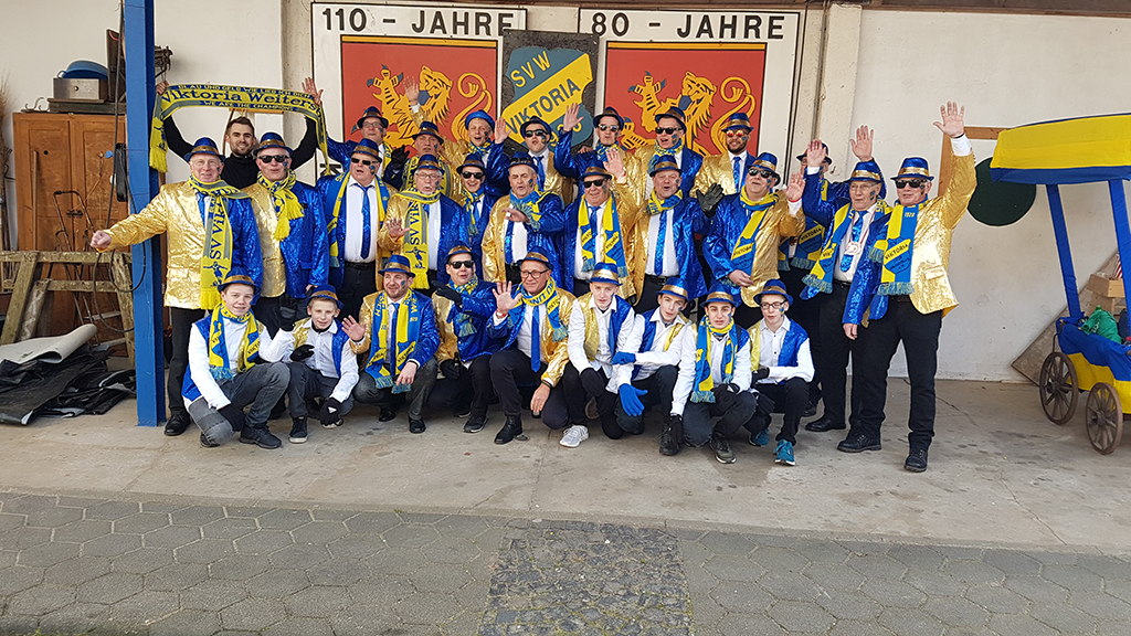 Mit über 30 Personen nahm der SV Viktoria in diesem Jahr am Schwerdonnerstagsumzug teil. Viele Stunden wurde im Hof der Familie Schiffer am Jubiläumswagen des SV Viktoria gebaut, den auch die Karnevalstruppe hatte sich das 90jährige Vereinsjubiläum zum Motto gemacht.